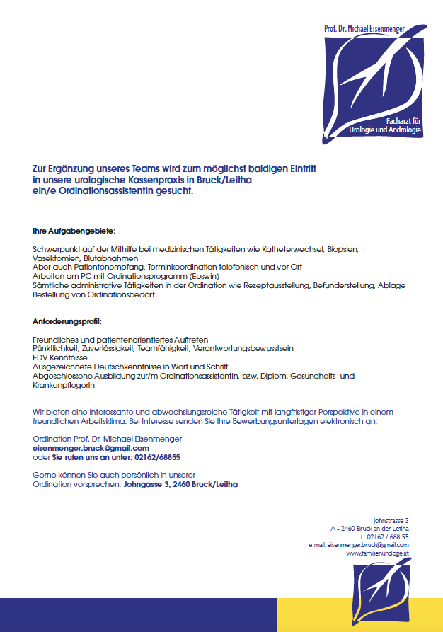 Sie gibt Ihnen einen Einblick und Informationen zu meiner Facharztpraxis für Urologie & Andrologie in Bruck an der Leitha und unserem Leistungsspektrum.